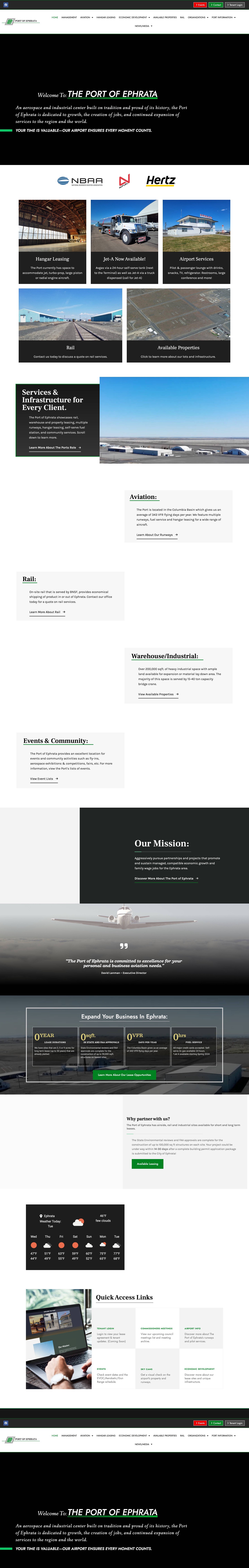 Port district website for economic development, property listings, and community infrastructure updates. WordPress build with government accessibility compliance.